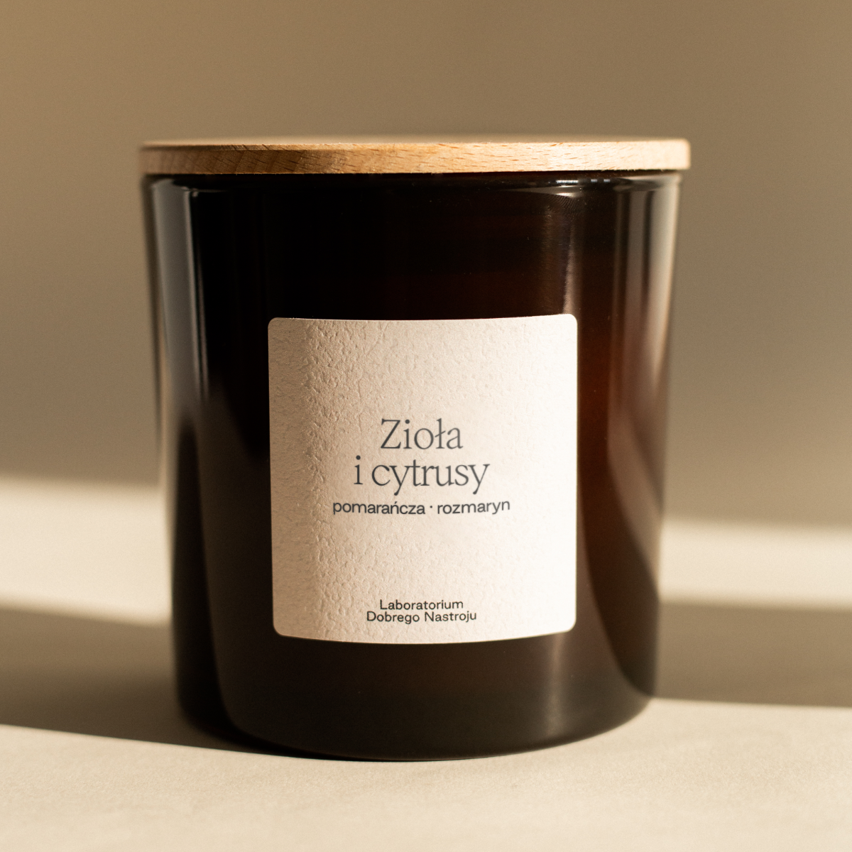 Bring the citrus and herb breeze of Italian summer into your interior! This natural organic soy wax candle with orange and rosemary essential oils brightens the mind and supports concentration. Perfect for the office, meeting friends or relaxing after a busy day - it will help offset stress and provide a feeling of recovery.
