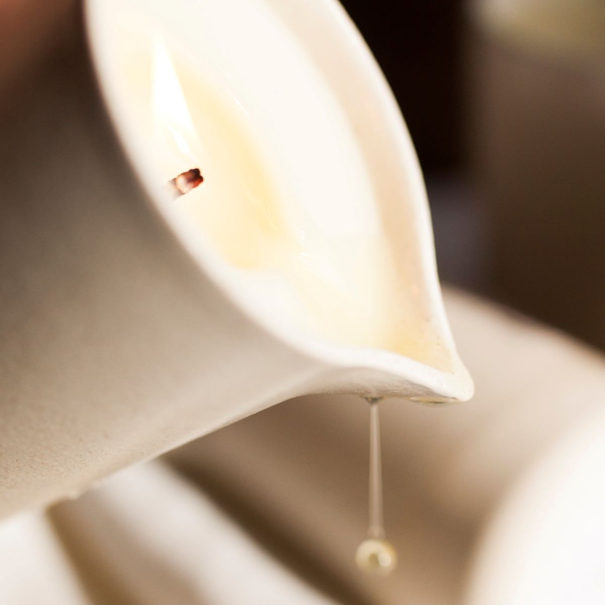 Applying warm oil to the skin is nice and easy. The handmade ceramic vessel with a specially shaped rim allows for easy application, while it also decorates the interior and makes using the candle a truly luxurious ritual.