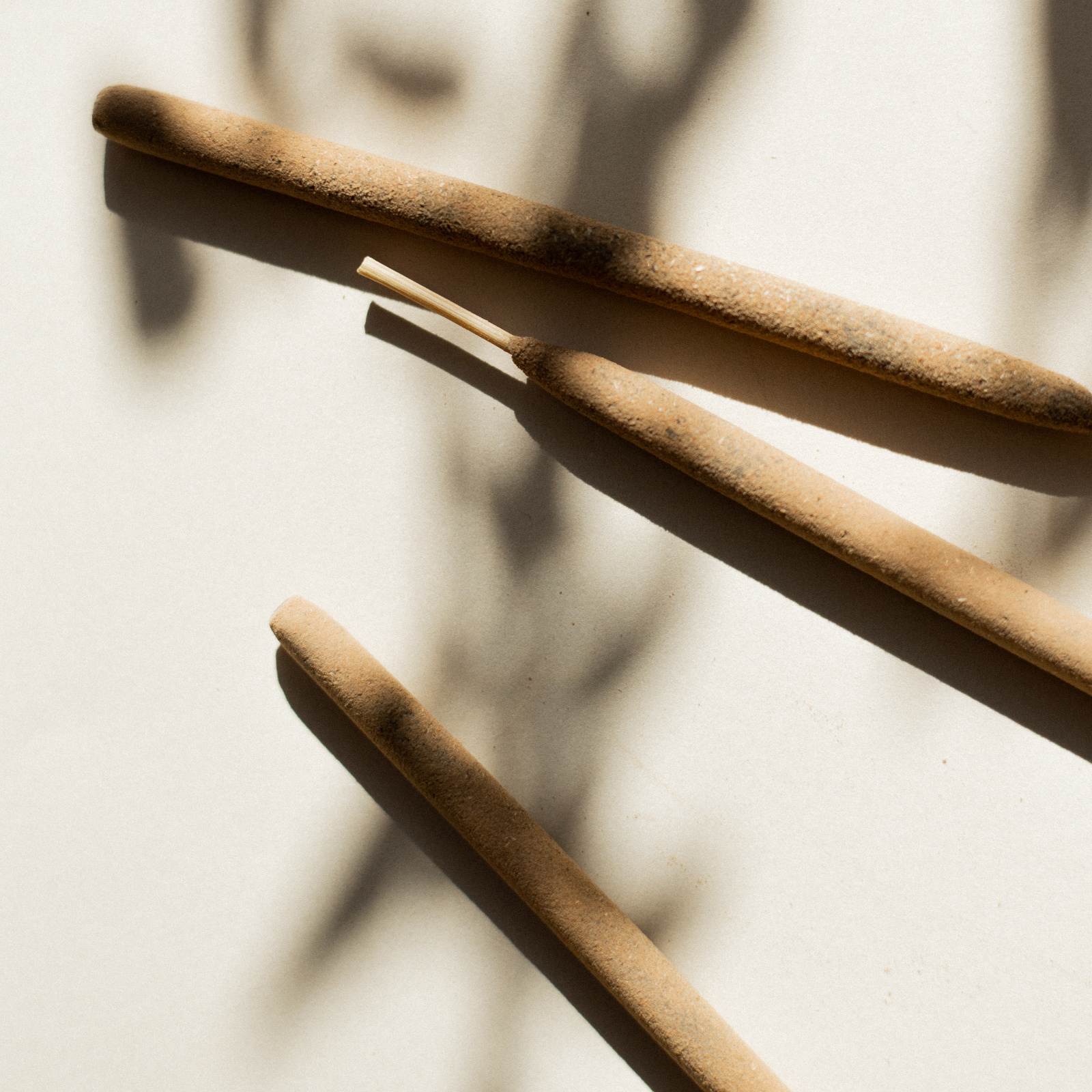 Incense on a stick, created from powdered natural plant ingredients, sustainably sourced.