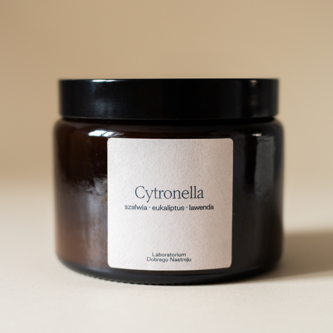 - Świeca z olejkami eterycznymi: cytronella · szałwia · eukaliptus · lawenda