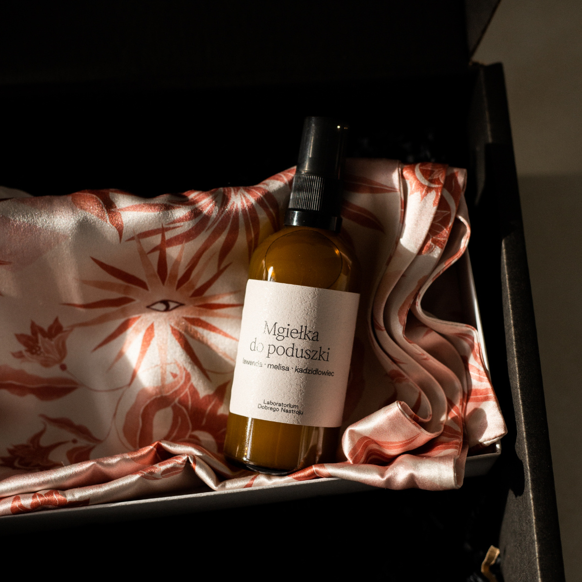 A dla tych co by chcieli mamy przyjemny zestaw: Jedwabna poszewka od The Morning Affair* w zestawie z naszą Mgiełką do poduszki. Pięknych snów!